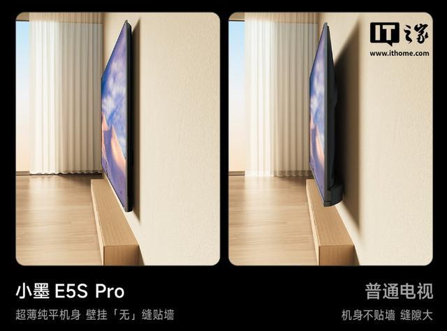 海信电视小墨 E5S Pro 采用纯平贴墙设计,搭载 360° 超感智联天线 Wi-Fi 6,IT之家附定价如下: