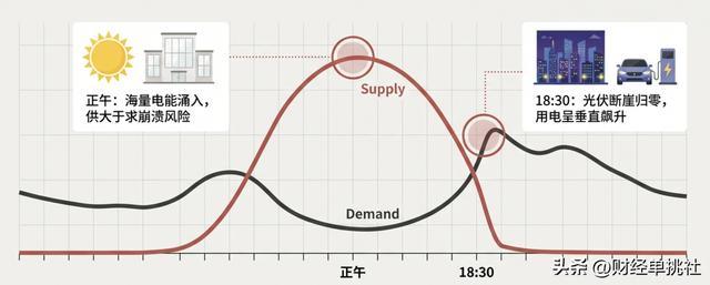 每天中午,无数光伏板同时爆发出庞大电能涌入电网,但此时大多数人在办公室,家庭电器停转,全网面临供大于求的崩溃风险。到了傍晚六点半,太阳落山,光伏发电量断崖式归零,但此时数亿人下班回家,同时开灯、开空调、给电动车充电。全社会的用电需求呈现出接近垂直的飙升。